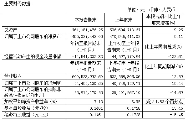 寶光股份2017年3季度主要財務(wù)指標(biāo)