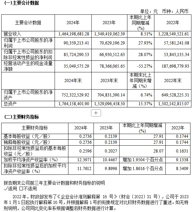 寶光股份2024年度主要會計數(shù)據(jù)和財務(wù)指標(biāo)